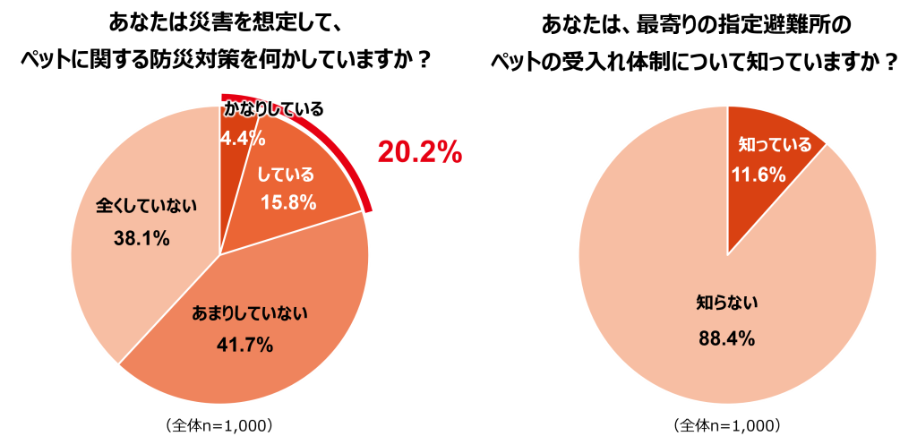 調査によると、ペットの防災対策を十分に行っている飼い主さんはわずか20.2%。