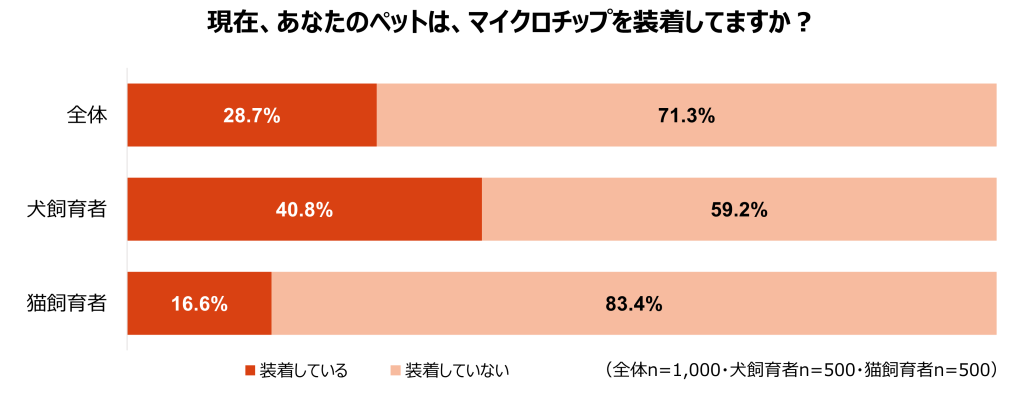 今回の調査でのマイクロチップ装着率は全体で28.7%の結果となりました。