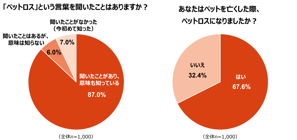 「ペットロス」の認知度は約9割、ペットロス経験者は約7割にのぼる