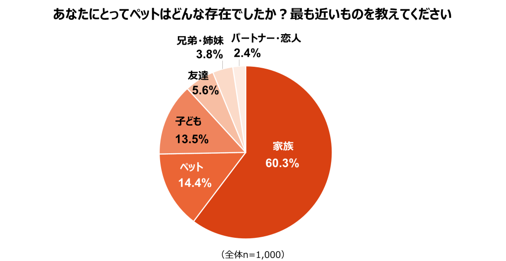 あなたにとってペットはどんな存在でしたかという問いに対しては、「家族」と回答した飼育者が60.3%で最多となりました。