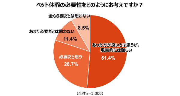 ペット休暇の必要性については、「あった方が良いとは思うが、現実的には難しい」が51.4%で過半数を占めました。
